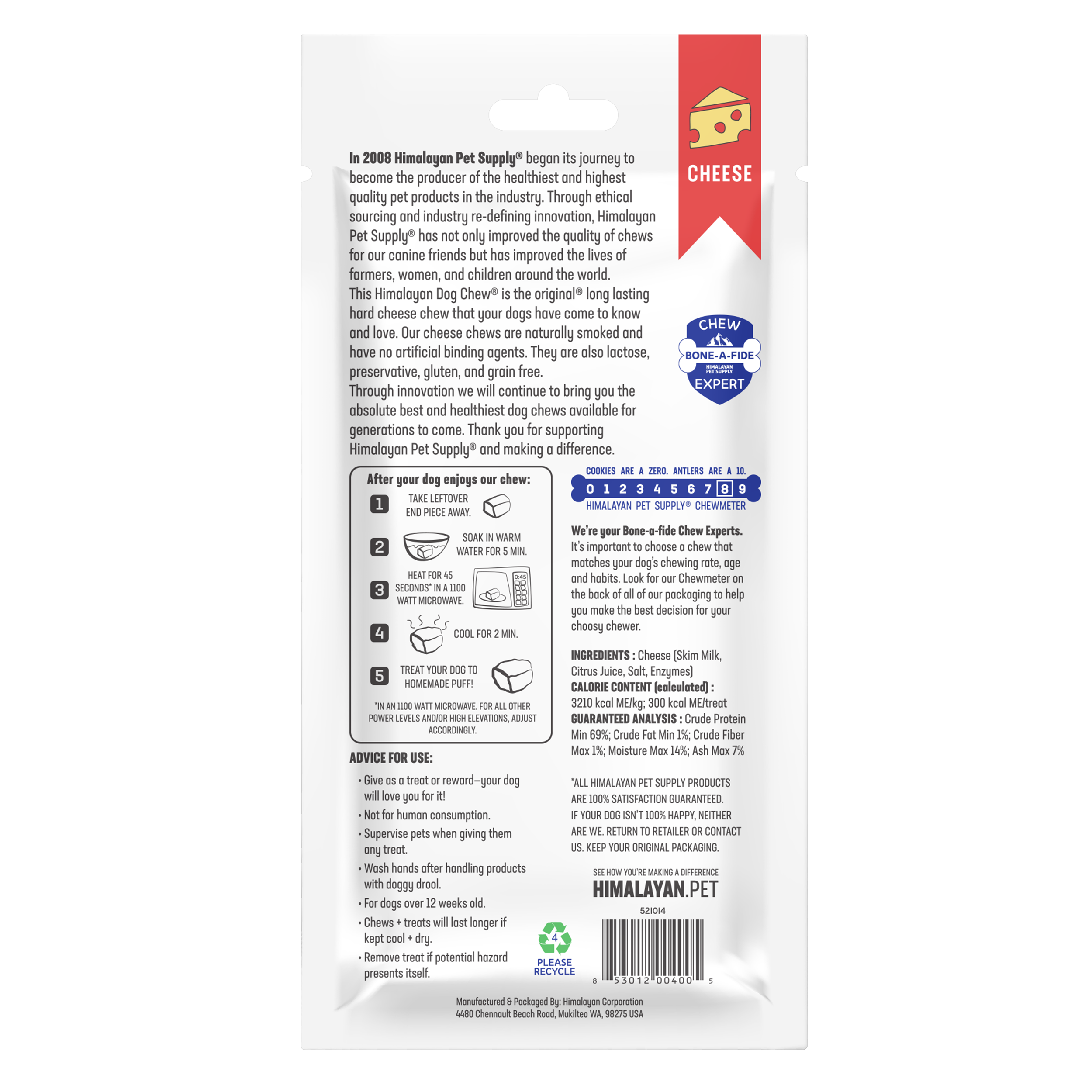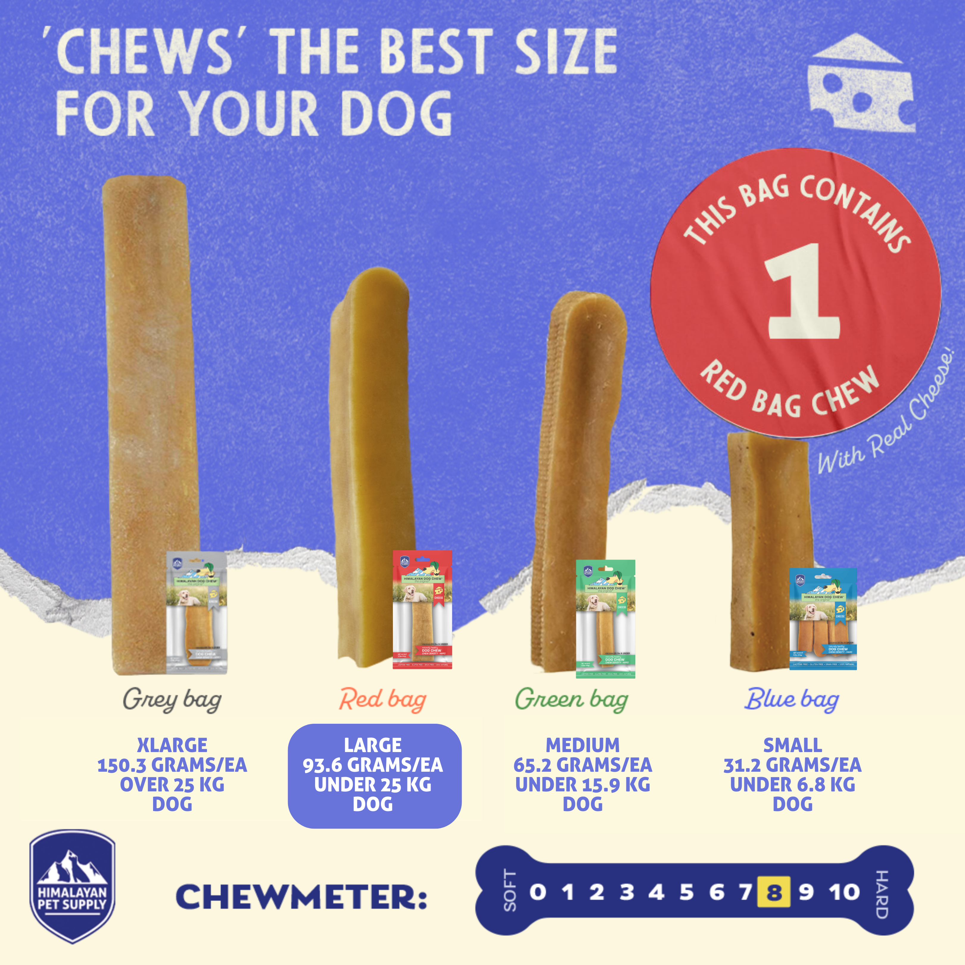The Chewmeter® is displayed on all Himalayan Dog Chew® packaging.