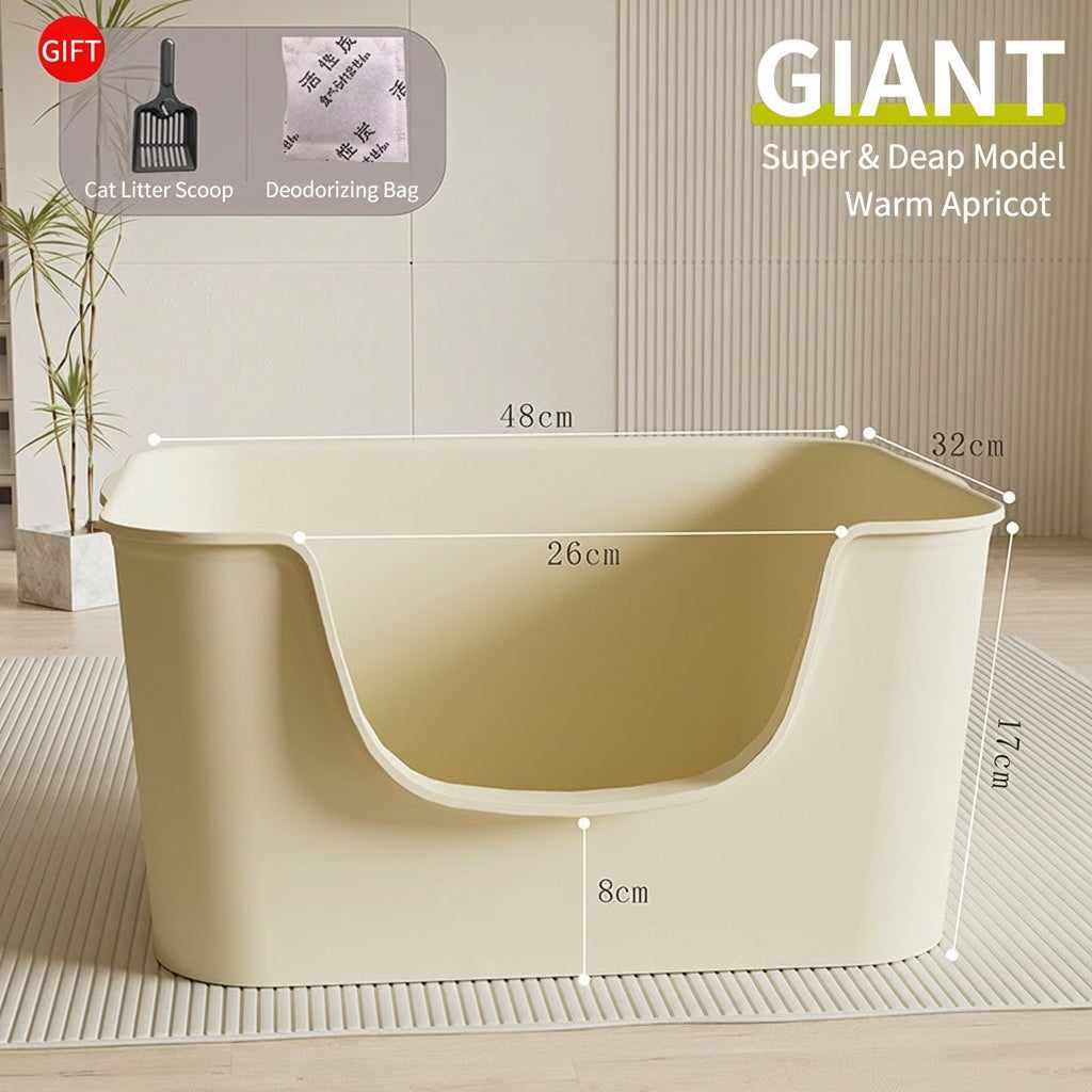 The PAWLIFE Open-Top Cat Litter Box features a spacious, high-walled design that offers a private and comfortable environment for your cat. Its high-sided splash guard minimizes scatter while the low front entry ensures easy access for cats of all ages. Made from a seamless, one-piece molded body, this durable box is easy to wipe down and perfect for keeping your floors tidy.