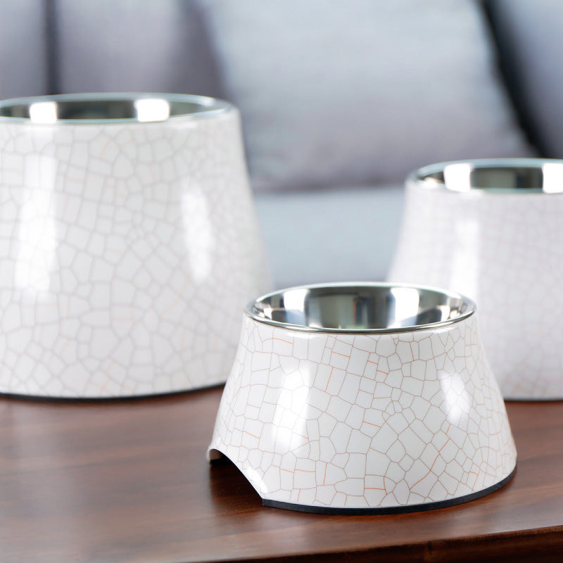 SUPER DESIGN Decal Elevated Stainless Steel Pet Bowl(white)