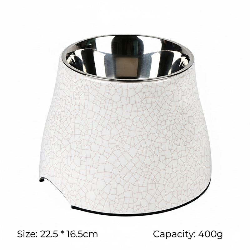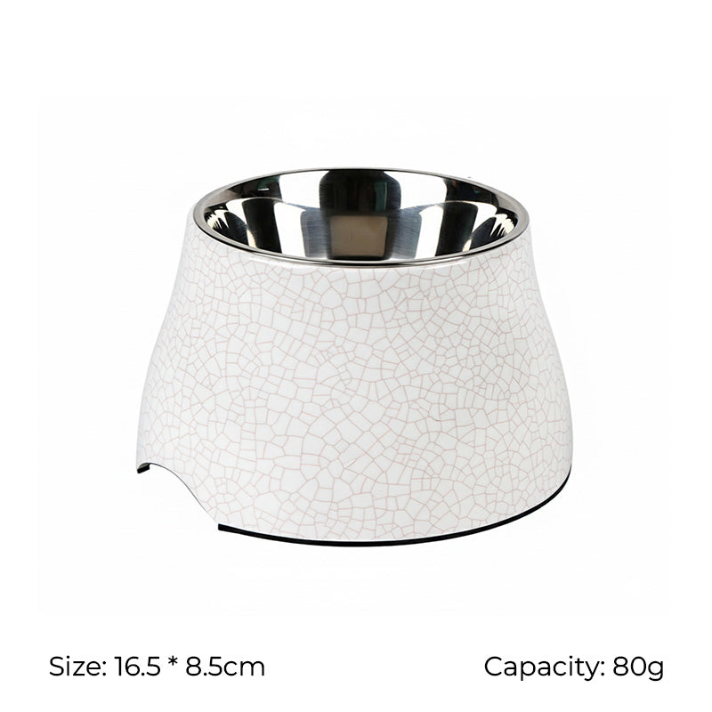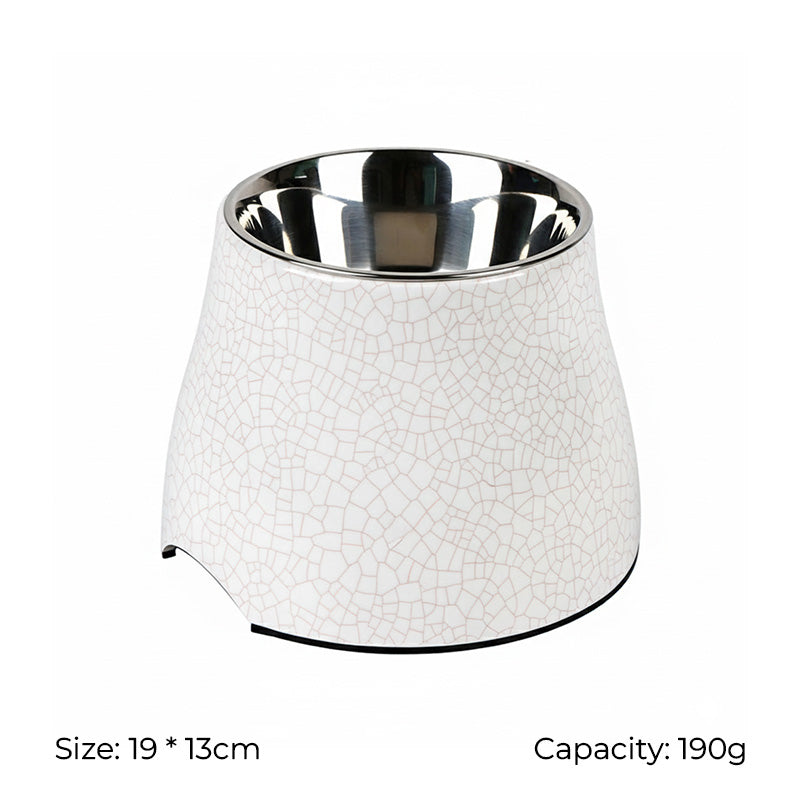 Say goodbye to messy mealtimes and protect your pet’s neck with the SUPER DESIGN Decal Elevated Stainless Steel Pet Bowl. Crafted from durable melamine with a removable stainless steel insert, this raised bowl keeps food and water clean, reduces strain on the neck, and adds a modern touch to your home.