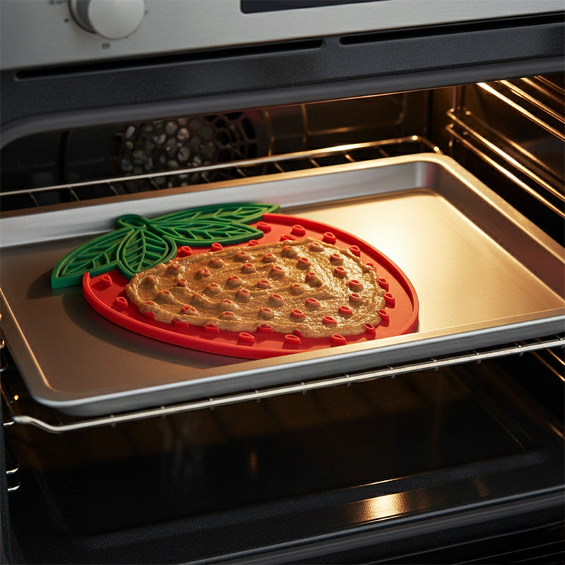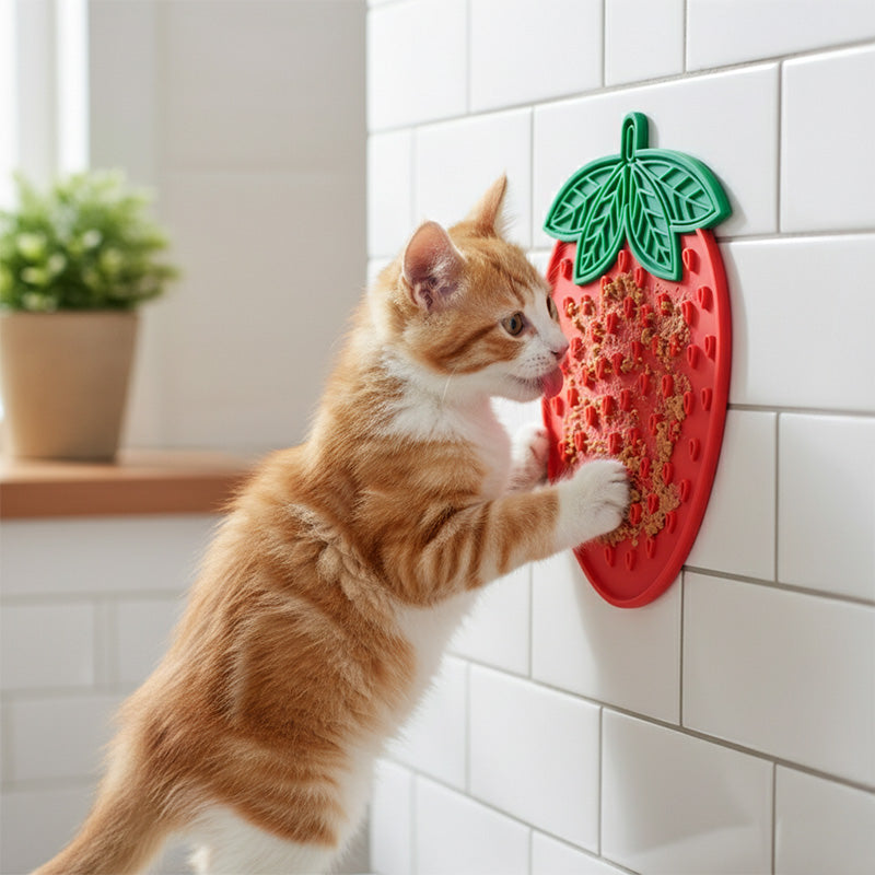 3D Strawberry compartments encourage slow feeding and longer licking sessions. Ideal for serving wet food, dry food, peanut butter, or treats. -