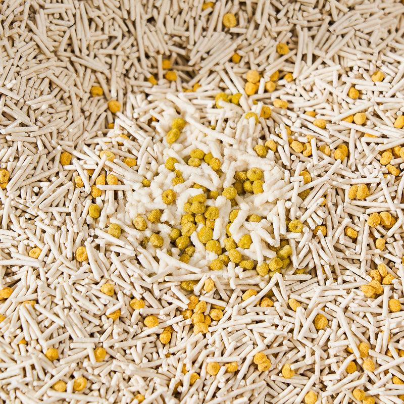 Sprinkle pellets evenly on top of your cat’s usual litter.
