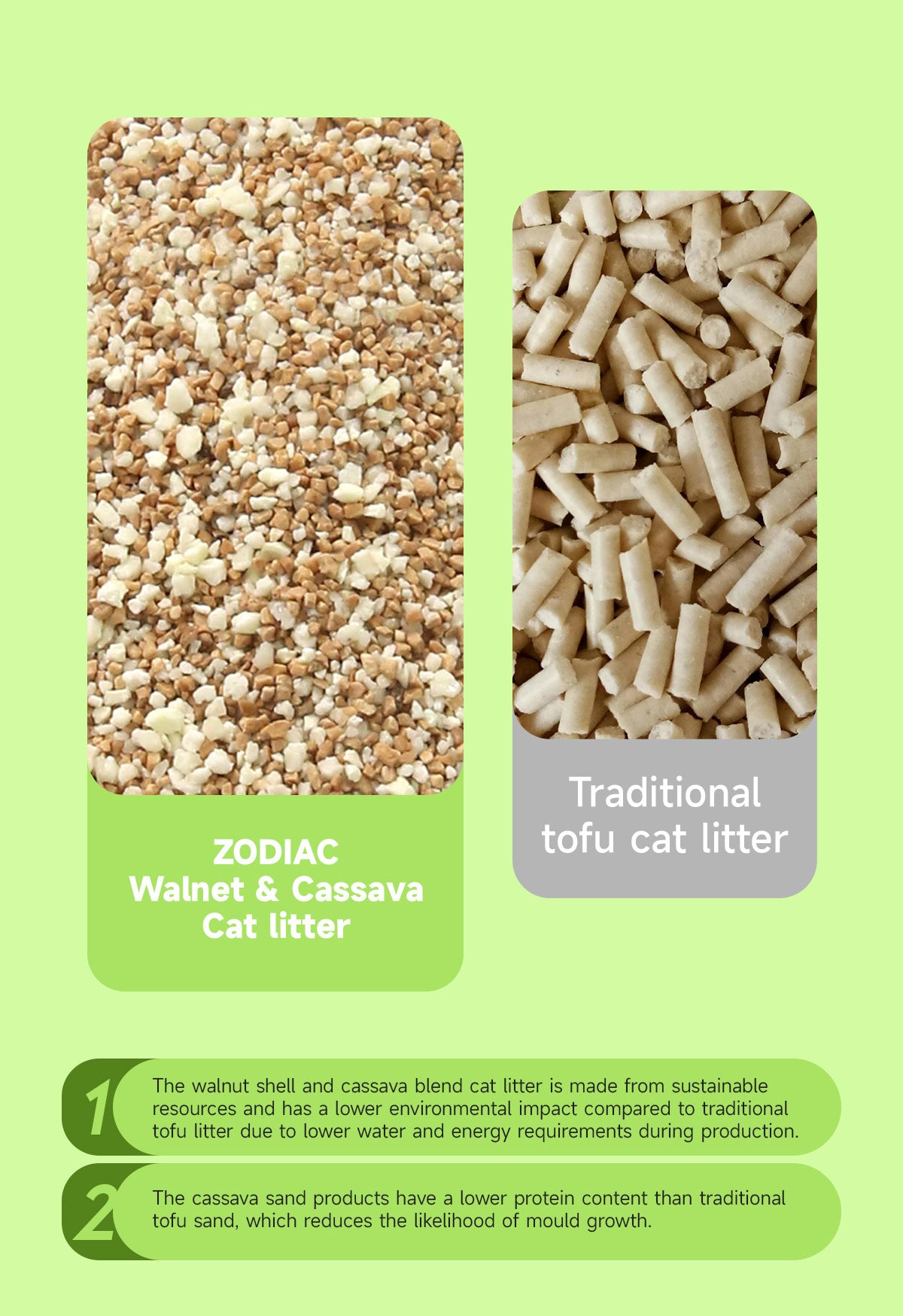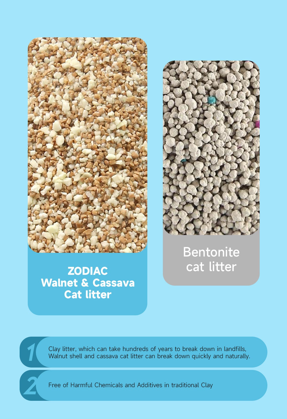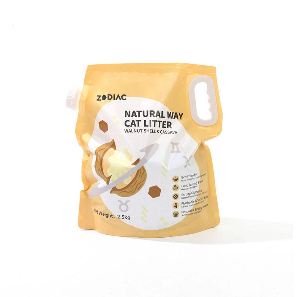 ✨ ZODIAC Walnut Shell & Cassava Cat Litter – Natural freshness, soft comfort, and eco-friendly convenience in every scoop.