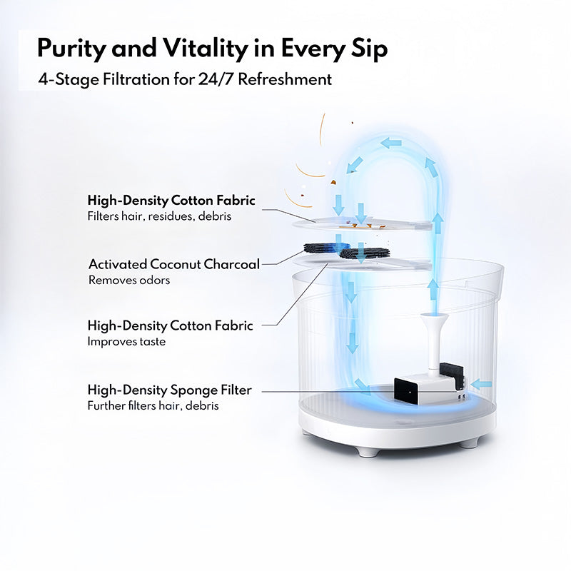 • Silent Operation – Advanced pump operates at <30dB, quieter than a whisper, keeping pets stress-free.