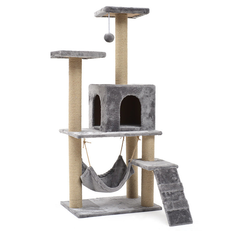 Designed to satisfy your cat’s instinct to scratch, climb, nap, and play — all in one stylish structure.