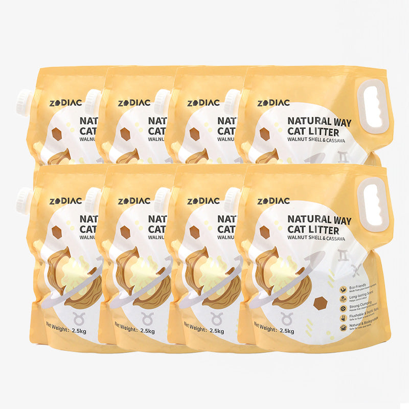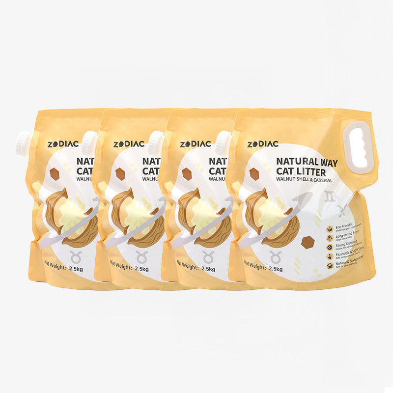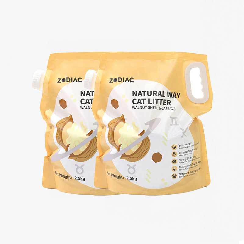 ✨ ZODIAC Walnut Shell & Cassava Cat Litter – Natural freshness, soft comfort, and eco-friendly convenience in every scoop.