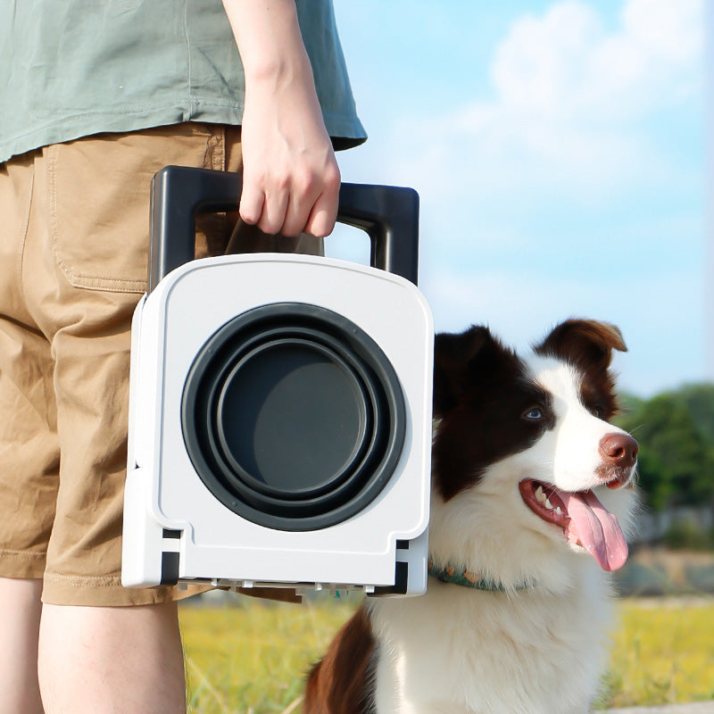 Make mealtime easy and stylish anywhere with the SUPER DESIGN Foldable Pet Dining Table. This elevated, collapsible feeding station comes with two silicone bowls, perfect for food and water, and folds neatly for travel, saving space while keeping your pet comfortable on the go.