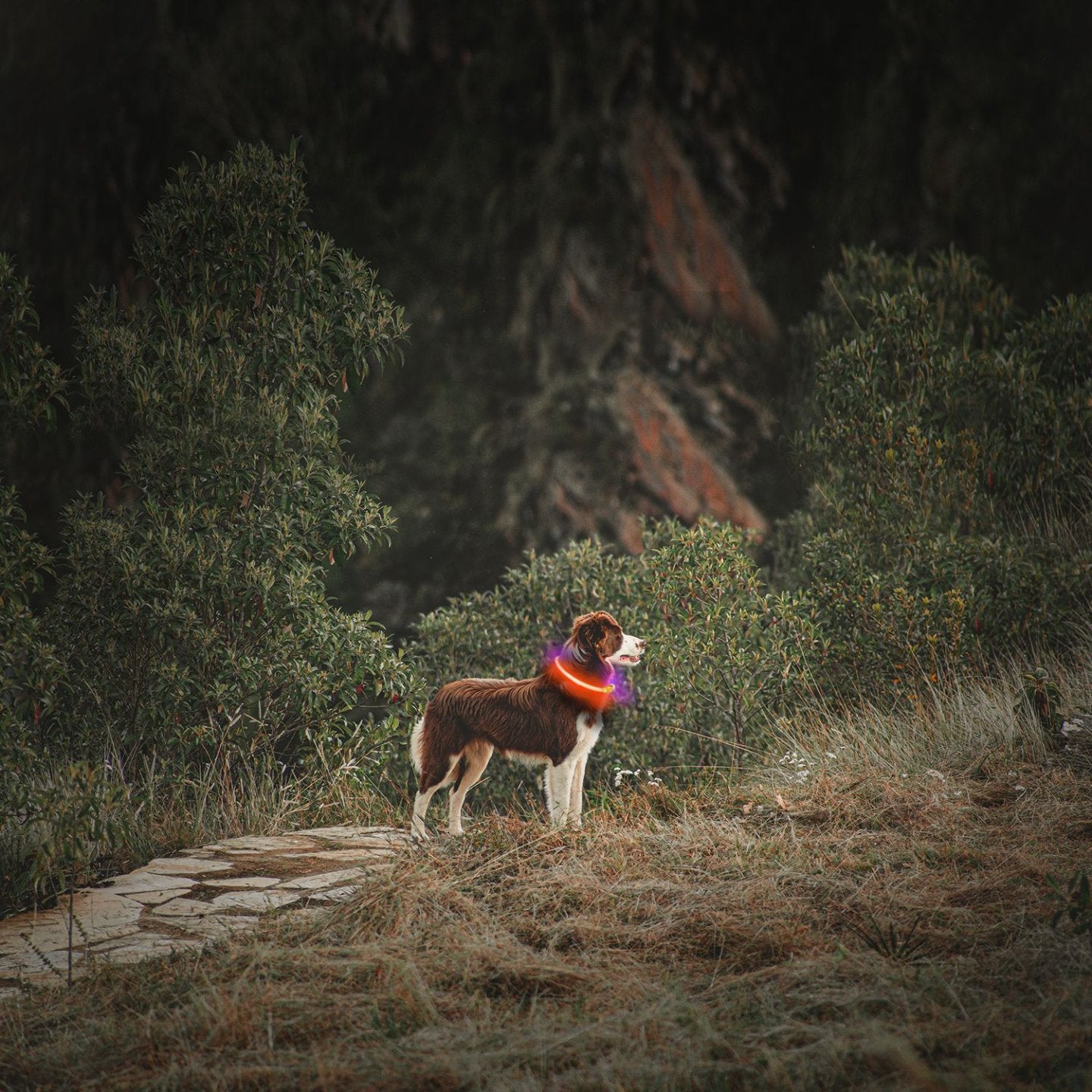 Keep your pet safe and visible during nighttime walks with the LaRoo Glow F20 Plus LED Pet Collar. Designed with three light modes, USB charging, and a customizable length, this waterproof collar ensures your furry friend is always seen — without pulling or damaging their fur.