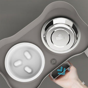 Dual Bowls – Detachable,1 Stainless Steel, 1 Slow Feeder Bowl.