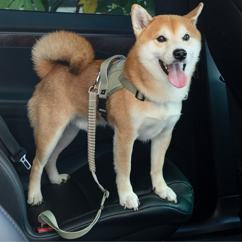 For safety, it is strongly recommended to attach the car seatbelt or leash to a well-fitted harness—not a collar.
