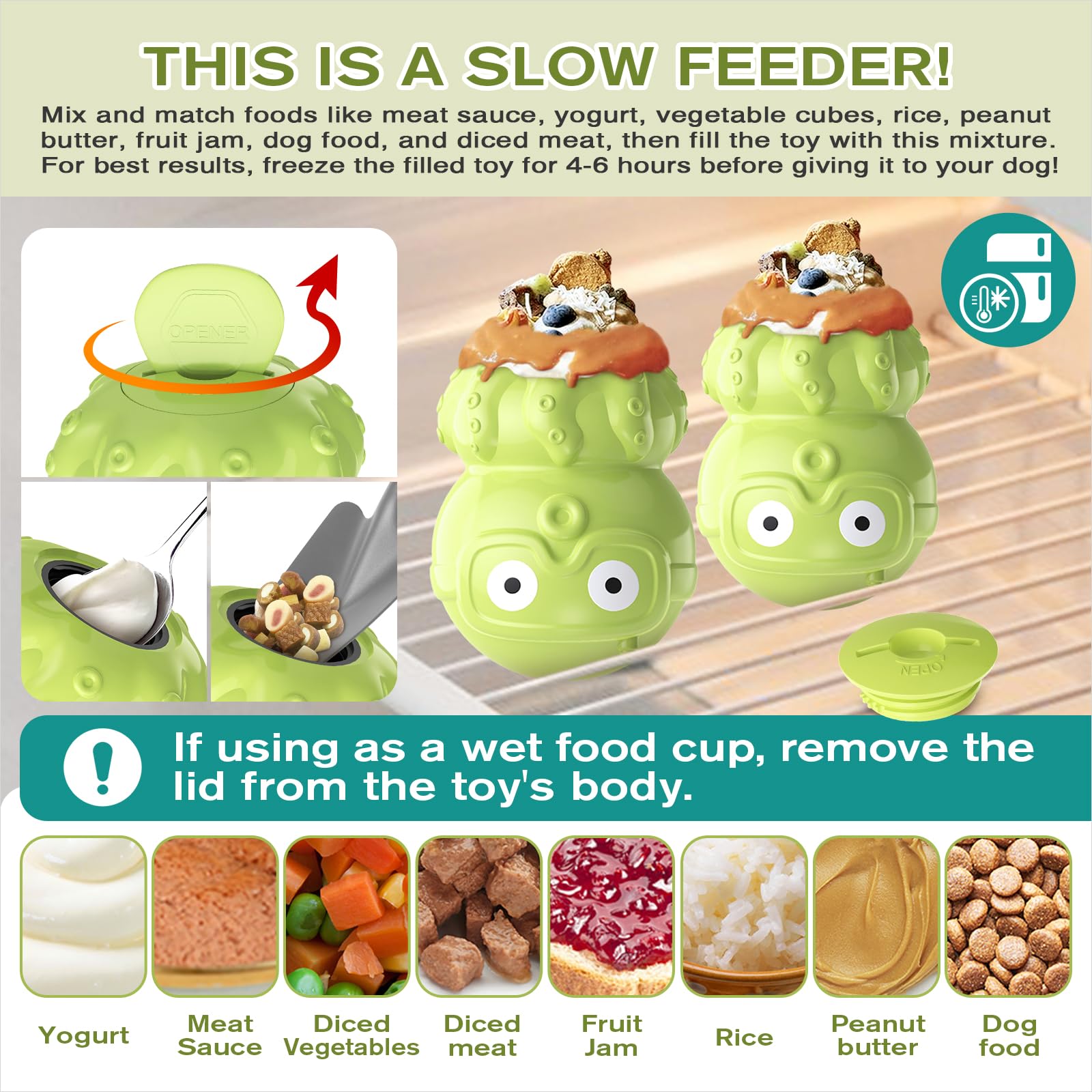 Wet Food Cup Use: Lid can be removed for filling with mixed wet foods like yogurt, peanut butter, diced veggies, and fruit jams. Freeze for 4–6 hours for extended licking fun.
