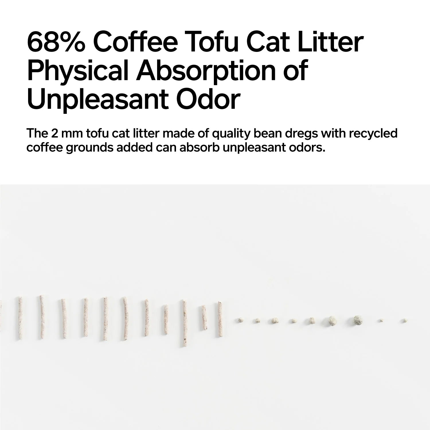 • Mix Ratio: 68% Coffee Tofu Cat Litter + 32% Spherical Bentonite