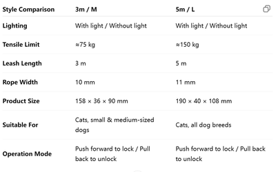 • 5m: Cats & all dog breeds (≤150kg pull)