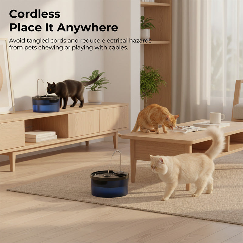 • Ultra-Quiet Design (<30dB) – No motor noise or splashing, perfect for noise-sensitive pets