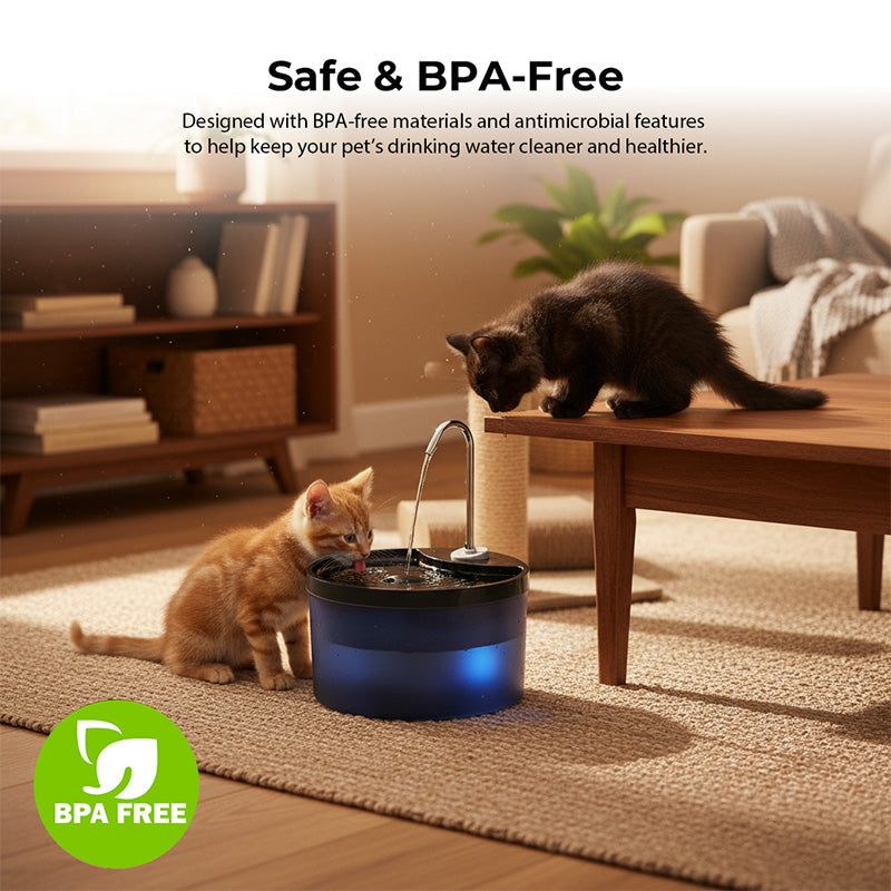 • Tap-Style Spout – Mimics running water to attract picky drinkers, especially cats