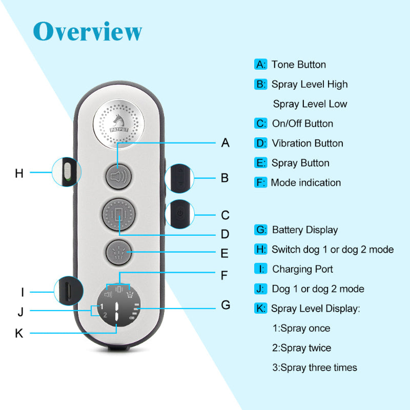 📢 3 Training Modes – Choose from Tone, Vibration, or Spray for flexible training tailored to your dog.