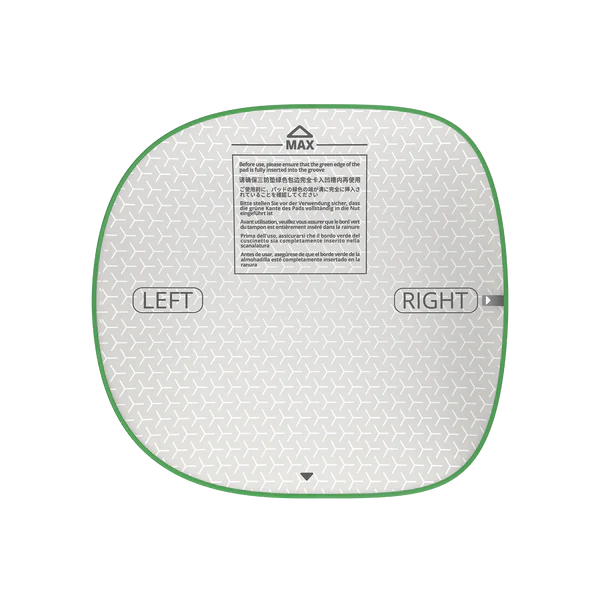 Simple Installation – Hold → Insert → Release. The pad locks into place effortlessly. (Tip: Installation is complete only when the green edge is fully hidden.)