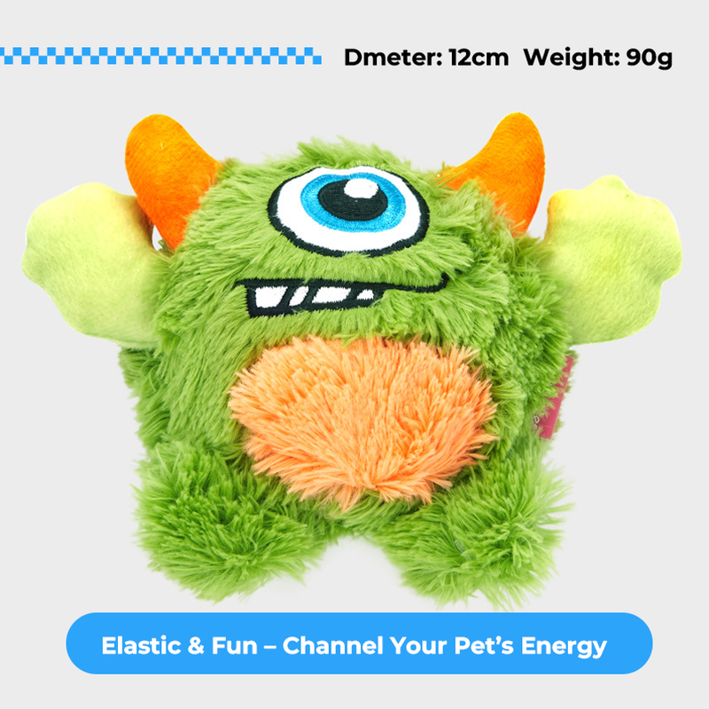 Featuring a fun, squishy texture with an internal TPR spiky ball and soft plush exterior, this toy satisfies chewing instincts while gently cleaning teeth. Built-in squeaker encourages active play and triggers your dog’s natural hunting drive.